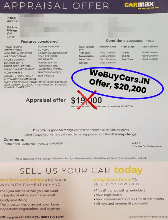 We pay up to $1,000 more than Carmax or any Local Dealer.